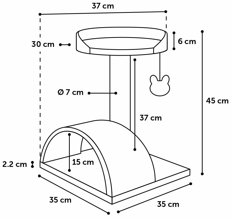 L’arbre à chat Gene est un griffoir polyvalent pour toute race de chat. Le meuble dispose d’un bel angle de vue au sommet du griffoir, de sorte qu’il peut garder un œil sur tout pendant sa sieste ou son repos. Le griffoir est construit sur un poteau de 7 centimètres recouvert de sisal. La base est également équipée d’un grattoir recouvert de sisal, sur lequel votre chat peut aiguiser ses griffes. Un griffoir pour chats agréable, compact et très complet.