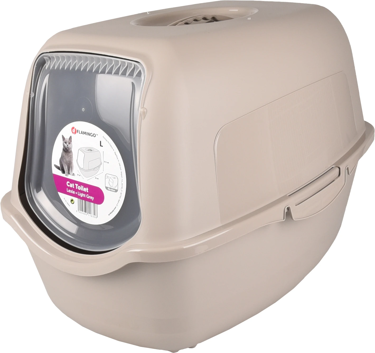 Le bac à litière Lexie est magnifique en gris clair avec une poignée sur le dessus pour que vous puissiez le déplacer sans problèmes. Le couvercle peut être facilement enlevé grâce à un système de clic. La porte maintient autant que possible l’odeur désagréable dans le bac à litière et peut être retirée.