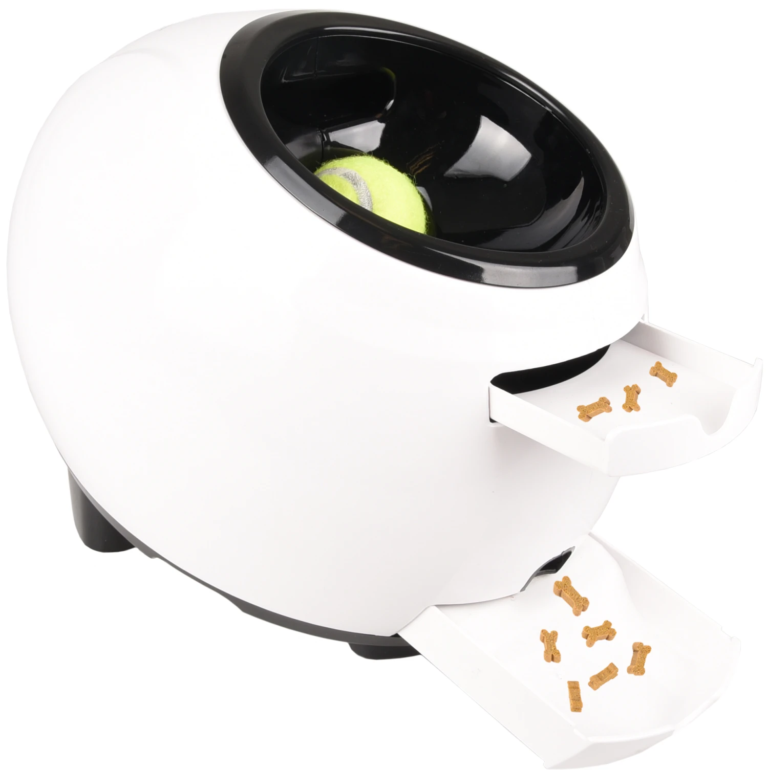 Ce lanceur de balle tire une balle et libère des snacks ou de la nourriture sèche. Laissez le chien aller chercher la balle sans que vous ayez à faire quoi que ce soit ! Vous pouvez utiliser le lanceur à l’intérieur ou à l’extérieur. Le lanceur est réglable en 3 positions jusqu’à 10 mètres. Ce jouet maintient le chien en forme et évite l’ennui.
