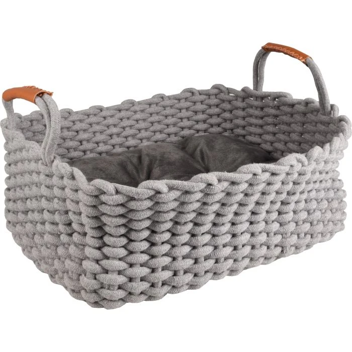 Le panier Enya de FLAMINGO est très confortable pour les chats et est idéal pour les câlins et le sommeil. Ce panier rectangulaire est fabriqué en tissu robuste à l’aspect tressé et est doté d’un coussin soyeux.