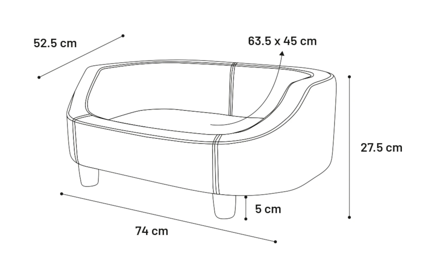 Ce magnifique canapé est idéal pour votre ami à quatre pattes. Il est fabriqué avec des matériaux de haute qualité. Le tissu utilisé, de couleur verte, présente des surpiqûres décoratives qui lui donnent un aspect élégant en combinaison avec des pieds de couleur foncée.