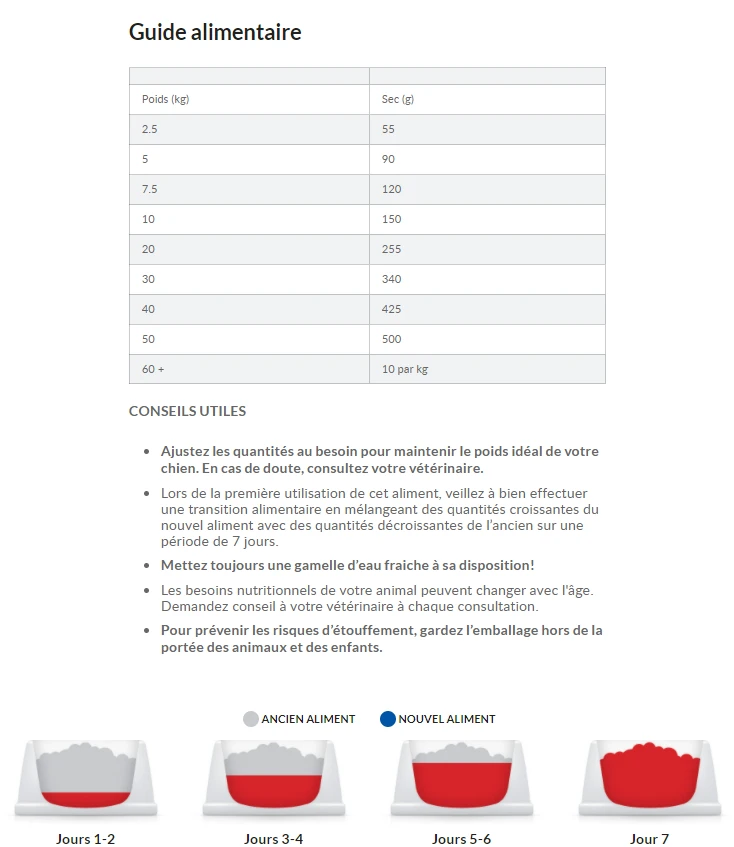 Son excellente saveur et sa grande densité énergétique en font un aliment idéal pour les chiens nerveux ou les chiens difficiles ne pouvant absorber que de petites quantités de nourriture à la fois.