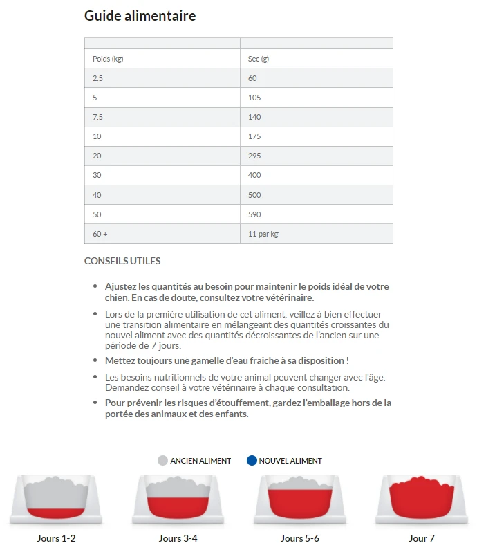 Cette formule supérieure enrichie en antioxydants et enrichi en L-Carnitine pour aider à convertir les graisses en énergie est indispensable aux chiens âgés. Sa densité énergétique et la teneur en matières grasses sont réduites et la teneur en fibres est augmentée pour réduire la sensation de faim. L’ajout de chondroïtine et de glucosamine provenant de source naturelle contribue au bon fonctionnement des articulations et stimule la mobilité articulaire. La présence de L-carnitine inhibe le stockage des graisses et augmente leur conversion en énergie. Pour maintenir un poil brillant et une peau saine, l’aliment contient une teneur élevée de zinc. Science Plan est également enrichi en anti-oxydant pour renforcer le système immunitaire.