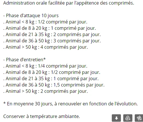 . Animal de 36 à 50 kg : 3 comprimés par jour.