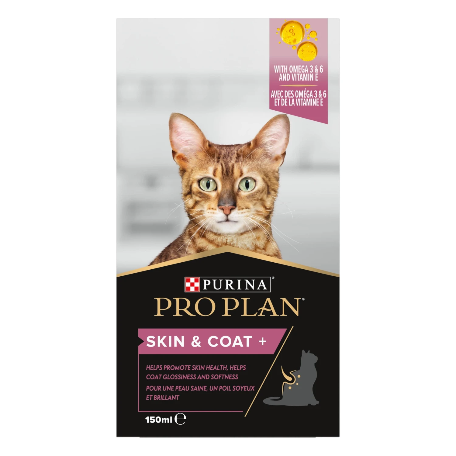 PRO PLAN® a mis au point une gamme d’aliments complĂ©mentaires ciblĂ©s destinĂ©s Ă agir sur la mobilitĂ©, l’immunitĂ©, la vitalitĂ©, la digestion, la peau & le pelage et le bien-ĂŞtre. PRO PLAN® Skin & Coat+ nourrit la peau et le pelage de votre chat de l’intĂ©rieur, grâce Ă sa formule riche en nutriments essentiels (tels que les acides gras OmĂ©ga 3 et 6 issus d’huile de saumon de Norvège, l’huile de lin et la vitamine E). Sa formule est scientifiquement conçu pour : – Soutenir une peau saine, hydratĂ©e et souple et un pelage brillant