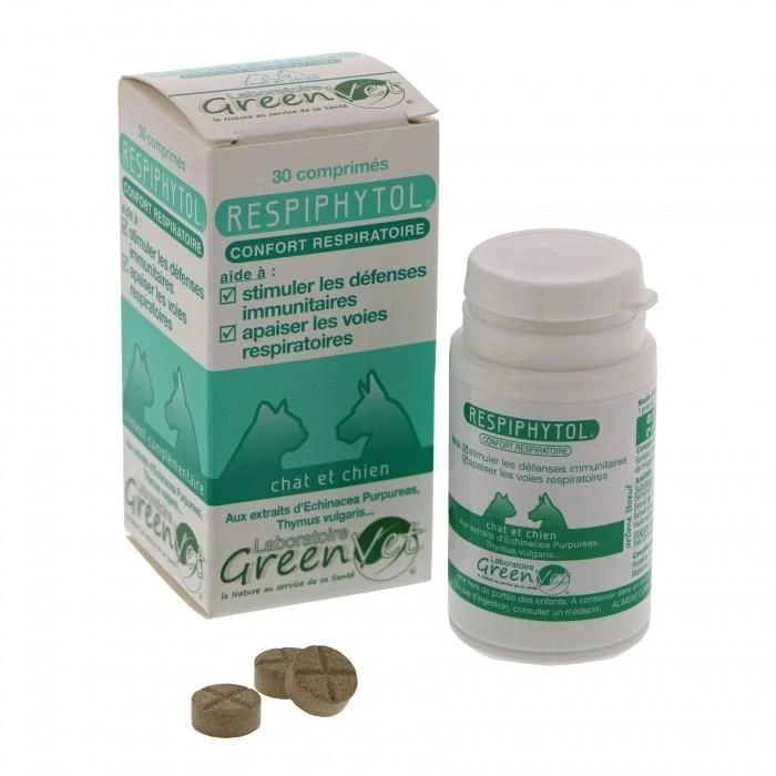 Respiphytol est un aliment complémentaire à base de plantes adoucissantes et expectorantes (Echynacée et thym) et de propolis, qui aident à soulager de manière efficace les troubles respiratoires causés par diverses affections : toux, toux de chenil, rhinite, encombrement des bronches, autres affections ORL…