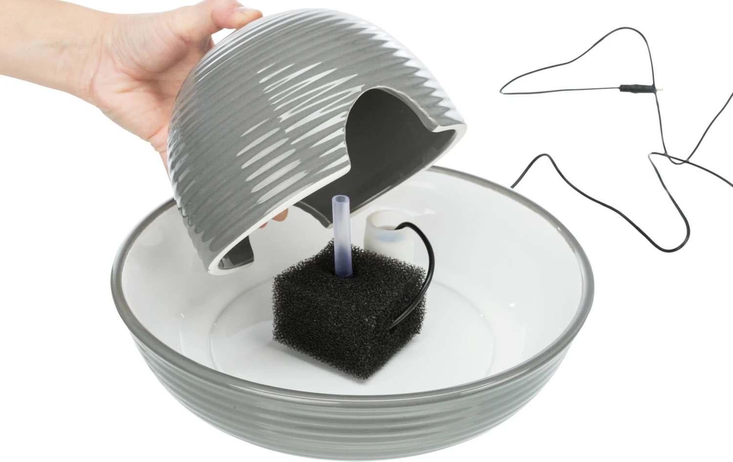Il est possible de boire de l’eau courante ou stagnante à partir du bol. Le bol en céramique va au lave-vaisselle. La circulation de l’eau garantit une eau riche en oxygène et un effet rafraîchissant naturel.