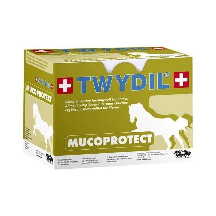 TWYDIL® MUCOPROTECT est un complément alimentaire pour le cheval, riche en extraits de plantes, vitamine C et pré-biotiques, destiné à soutenir le système de défense naturelle de l’organisme chez le cheval.