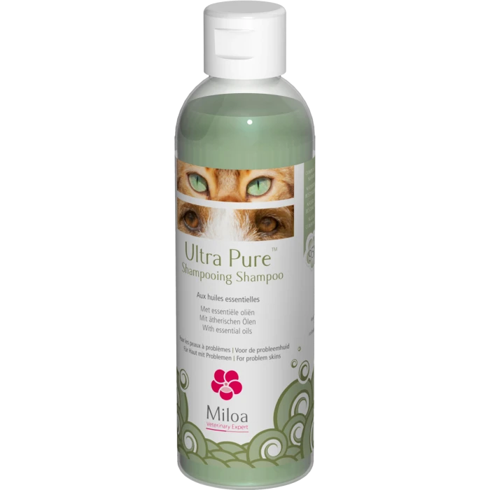 Ultra Pure TM de Miloa nettoie en douceur les pelages très sensibles grâce à ses bases lavantes douces et au beurre de karité.