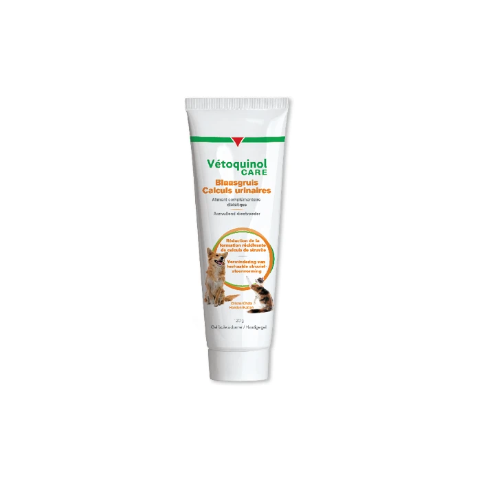 Calculs urinaires de Vétoquinol Care est un gel à faible teneur en magnésium et ayant un effet acidifiant sur les urines.